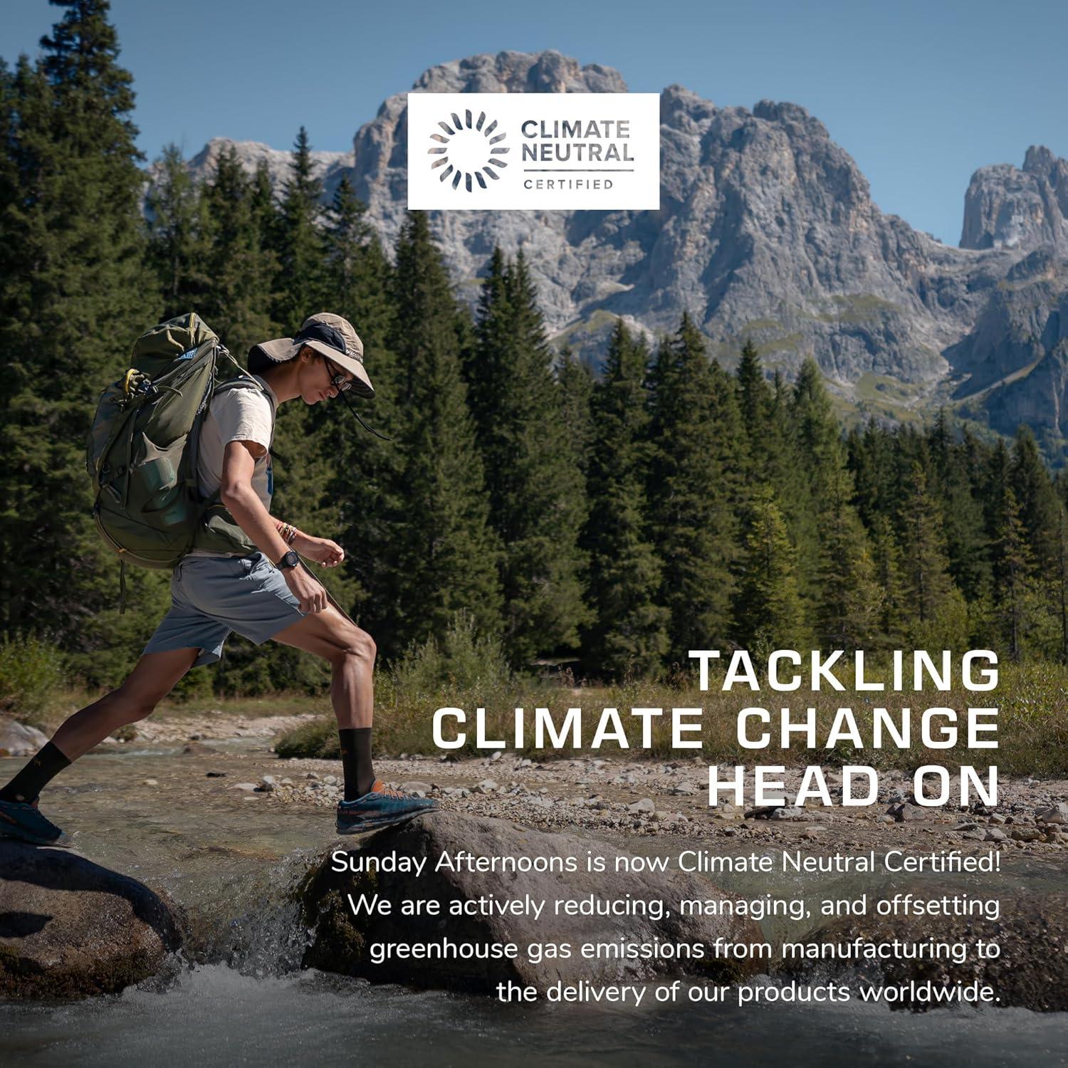 Hook & Loop Tab Allows user to lift neck cape for added breathability. Strategic Crown Ventilation Keep your head cool with our strategically placed mesh ventilation. Adjustable Sizing Pick your size, then fine-tune the fit with our external size adjuster. 4″ Wide Brim and 7 1/2″ Neck Cape Keep your entire face and neck shaded with this UPF 50+ hat style. UPF 50+ Sun Protection It's hard to beat the enjoyment of a day in the sun, unless it's a day spent in the shady pleasantness of a UPF 50+ hat. UPF 50+ is a high sun protective rating achievable and means only 1/50th or less of UV rays are able to pass through, allowing you to diminish the sun, not the fun! Description “If you’re spending hours on your summer garden project or just need some extra coverage for your face and neck while kayaking, the Sunday Afternoons Adventure Hat is a superb choice thanks to its extra-long brim and neck cape. This full-coverage option stands out from the rest thanks to its functional design.” — Gear Junkie This is it—the most recognizable sun hat on the planet! You may not see it on a Parisian runway, but you’ve seen this Sunday Afternoons original on adventurers everywhere who know how to have a good time in the elements without losing their cool. Every inch of this hat is engineered for FUNctional sun protection: smart fabrics, customizable sizing, innovative features, and a sun-conscious design. Wherever your adventures take you—trekking, running rapids, or a date with some salted caramel ice cream on a sunny patio—the Adventure Hat has you covered. Features & Specs 4″ Brim and 7½” Neck Cape UPF 50+ Certified Breathable Sun Rating (mesh vents not rated) Strategic Crown Ventilation Water And Stain Resistant Floats in Water Wicking Sweatband Adjustable Sizing Weight: 3.0 ounces/85.0 grams Care & Content How to pack your hat How to care for your hat Fabric content: Main Fabric: 100% Nylon, Crown Mesh: 100% Polyester Washing and care instructions: Hand wash cold, line dry. Do not bleach, iron, or dry clean. Packing instructions: Packs flat, do not fold or crease brim