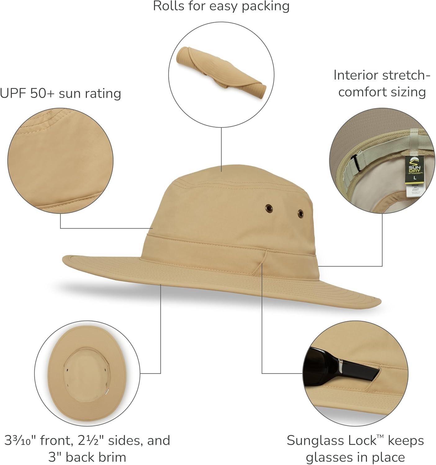 SUNGLASS LOCK AND FLOATABLE DESIGN: The integrated Sunglass Lock keeps your shades secure for added convenience. If you're out on the boat or in the kayak, never worry about losing your hat in water—it floats. With a crushable design that makes it easy to pack, this shade hat is ideal for globetrotters and weekend warriors alike.
